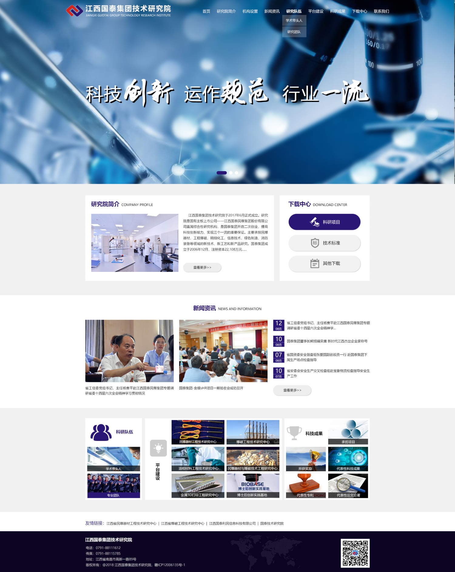 江西國(guó)泰集團(tuán)技術(shù)研究院于2017年6月正式成立。研究院是國(guó)有主板上市公司——江西國(guó)泰民爆集團(tuán)股份有限公司直屬綜合性研究機(jī)構(gòu),是國(guó)泰集團(tuán)開(kāi)啟二次創(chuàng)業(yè),提高科技創(chuàng)新能力,實(shí)現(xiàn)三個(gè)一流的重要保證。主要承擔(dān)民爆器材、工程爆破、精細(xì)化工、信息技術(shù)、綠色制造、消防裝備等領(lǐng)域的新技術(shù)、新工藝和新產(chǎn)品研究。