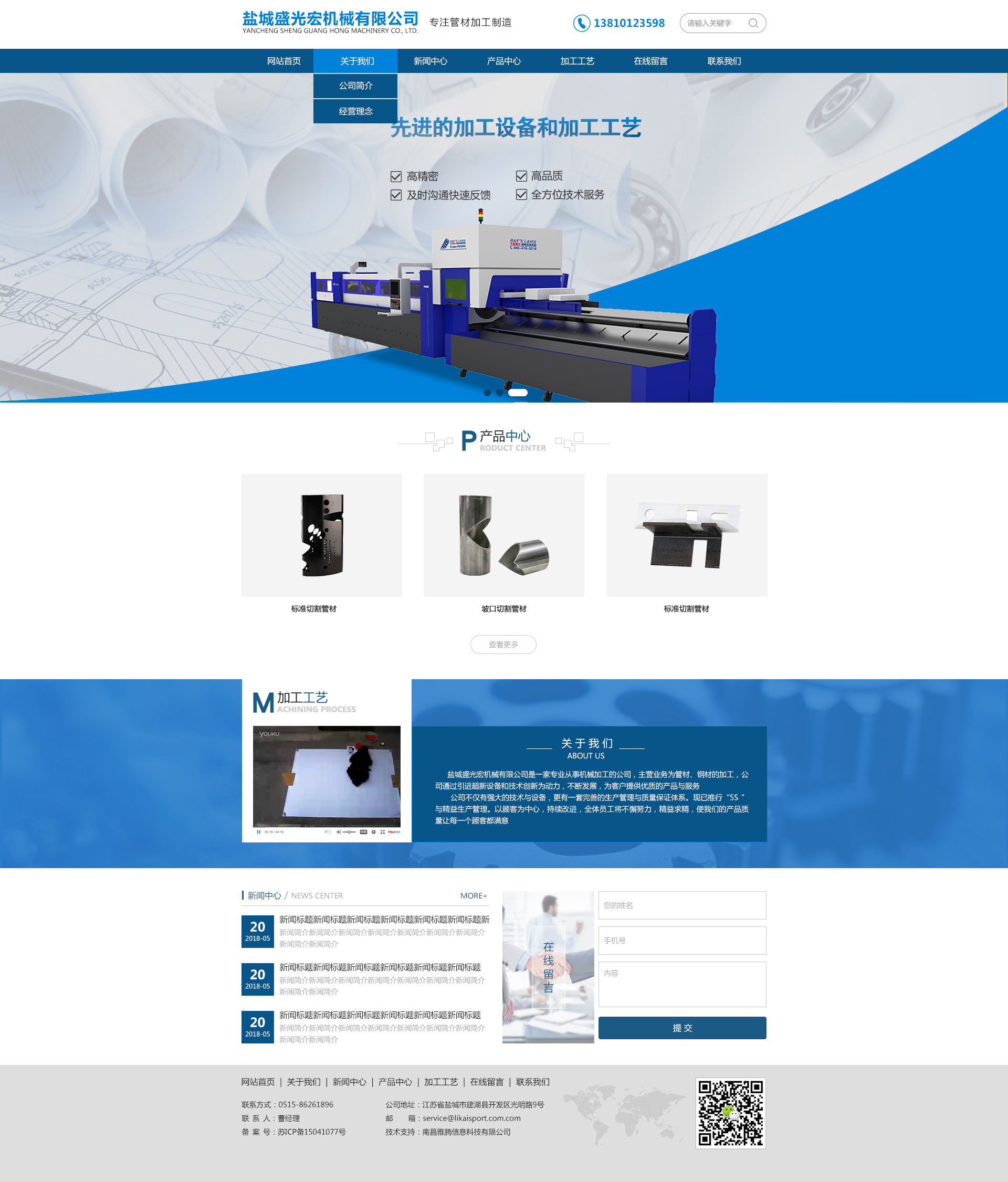 鹽城盛光宏機(jī)械有限公司是一家專業(yè)從事機(jī)械加工的公司,主營業(yè)務(wù)為各種管材切割、各種鋁材、不銹鋼件、碳鋼件、鋼材的加工、焊接加工,激光打標(biāo),公司擁有大族激光P6018D全自動高精度激光切管機(jī)1臺,激光打標(biāo)機(jī)1臺,松下焊接機(jī)器手4臺、可焊接鋁件,碳鋼件,不銹鋼件,多臺高精度數(shù)控車床對外加工,公司通過引進(jìn)超新設(shè)備和技術(shù)創(chuàng)新為動力,不斷發(fā)展,為客戶提供優(yōu)質(zhì)的產(chǎn)品與服務(wù)。